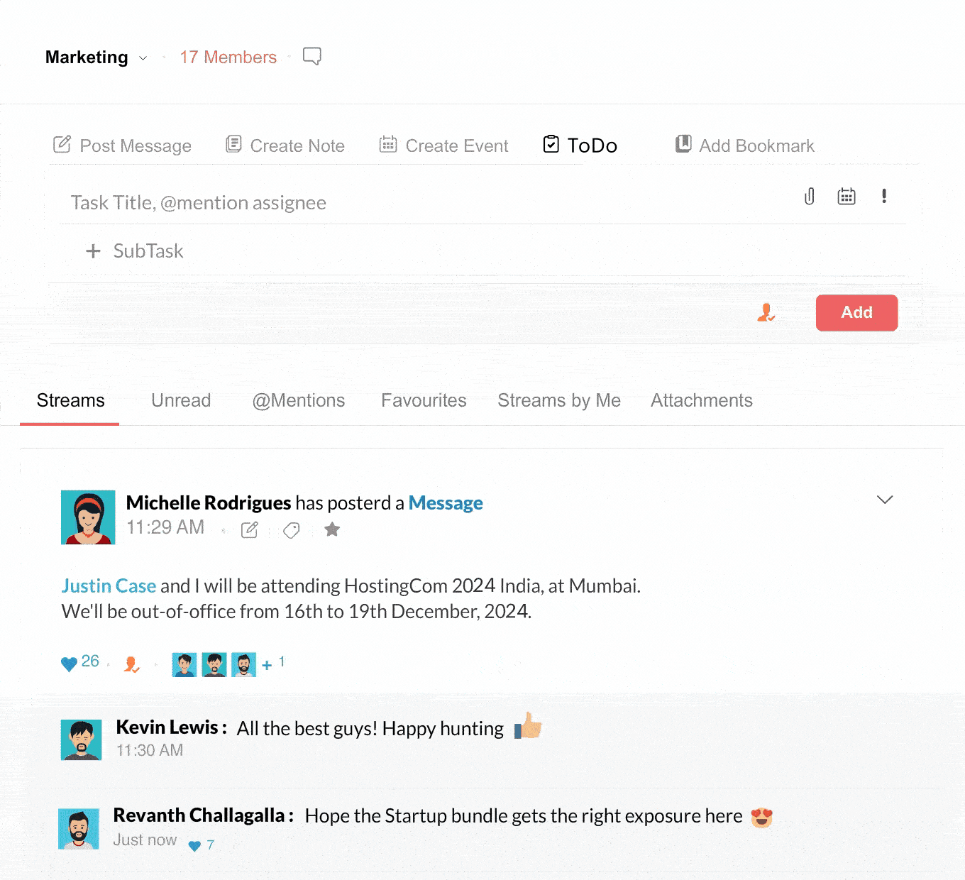 With Streams, productive conversations can be had without the clutter of long, cumbersome email threads.